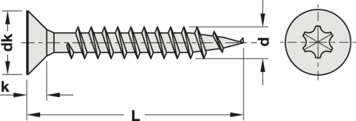 014.72.071 Häfele Faforgácslapcsavarok Hospa Süllyesztettfejű IS Torx Tövigmenetes 4,0x30mm