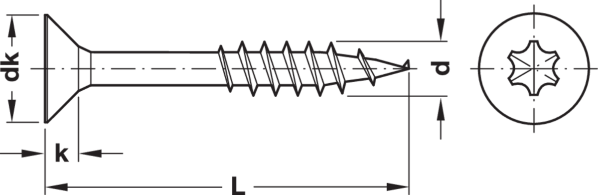 014.82.053 Häfele Faforgácslapcsavarok Hospa Süllyesztettfejű IS10 Torx Részmenetes 3,5x35mm