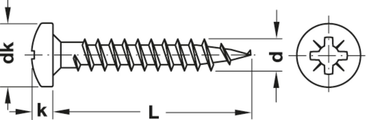 015.71.839 Häfele Faforgácslapcsavarok Hospa D-fejű PZ2 Tövigmenetes 4x17mm Horganyzott