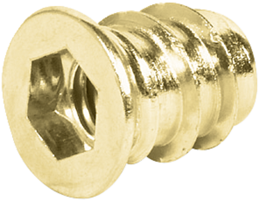 030.10.564 Häfele Becsavarós Hüvely Takarószegéllyel M6 Belső Menettel Hossz 15 mm Sárga Krómozott
