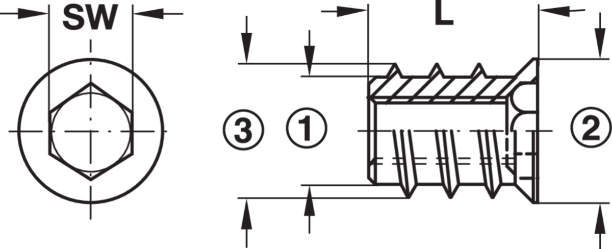 030.10.883 Häfele Becsavarós Hüvely Takarószegéllyel M8 Belső Átmérővel Hossz 13mm Horganyzott