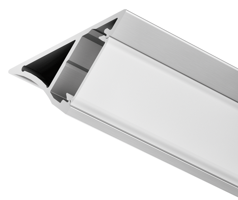 833.74.898 Häfele Aluminum Aláépíthető Profil Loox LED Szalaghoz Háromszögalakú, Tejüveg, Magasság 18,5mm, Ezüstszínű Eloxált