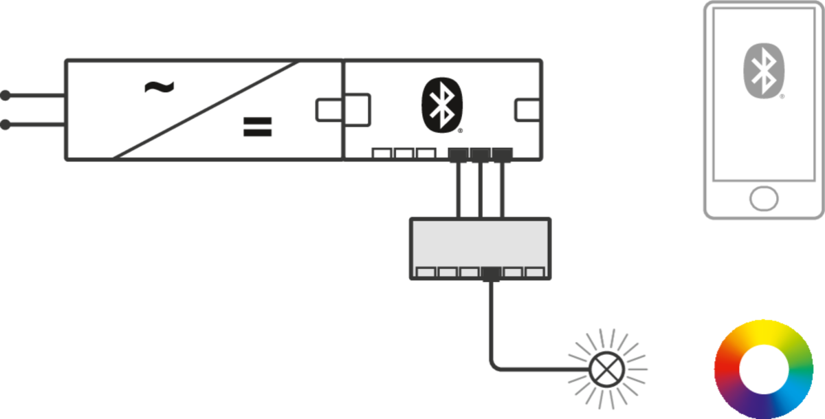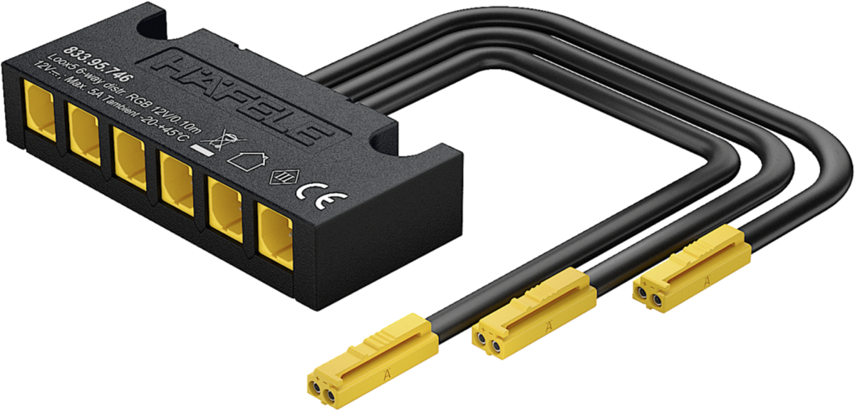 Alkalmazási terület: RGB lámpák csatlakoztatásához a 6 utas Häfele Connect Mesh elosztóhoz