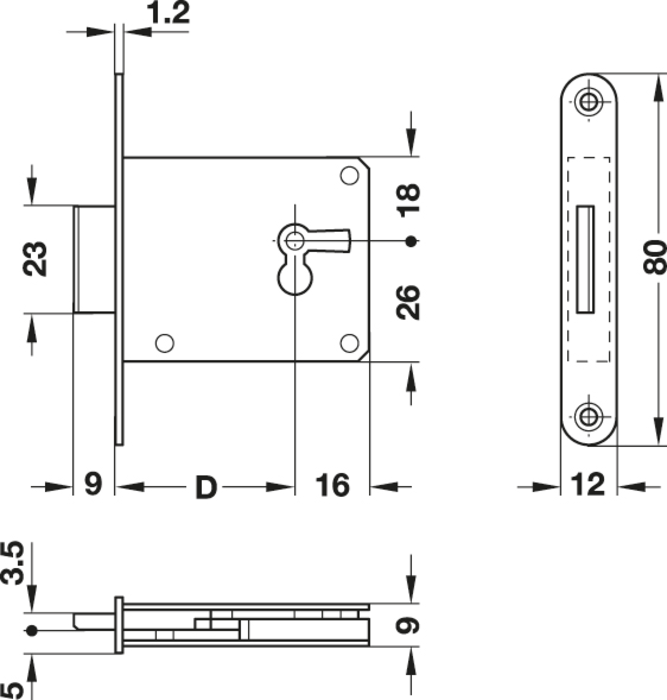 213.21.335 Häfele Bevésőzár Kulccsal Bal Tengelytávolság 30mm
