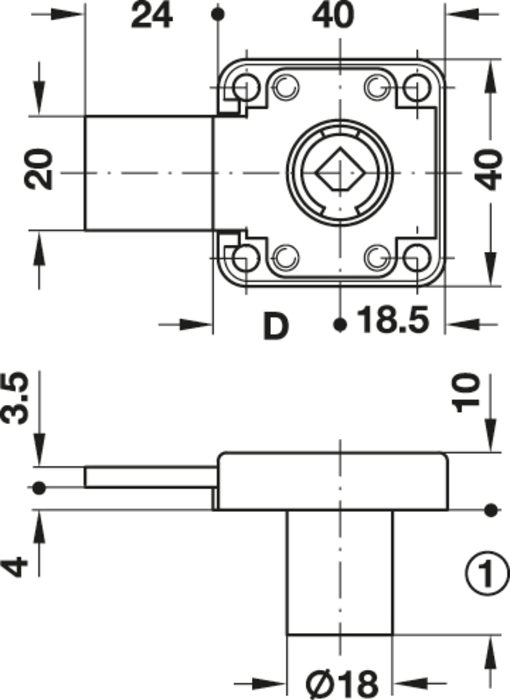 232.25.600 Häfele Symo Felcsavarozható Tolózárak Hosszú Zárnyelvvel Tengelyméret 22mm Jobb