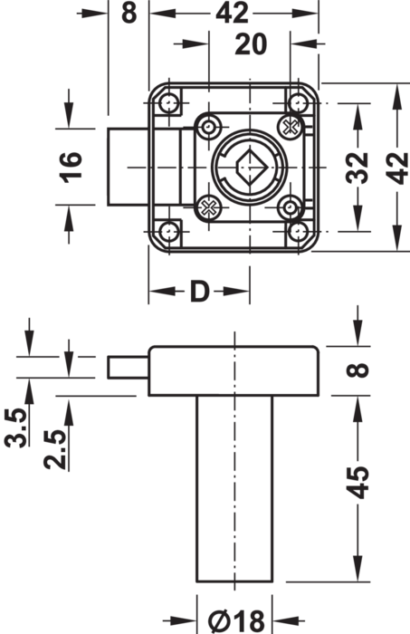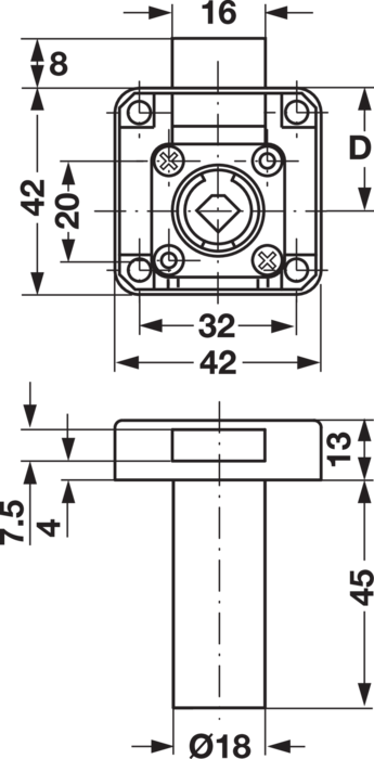 232.26.602 Häfele Symo Felcsavarozható Tolózárak Meghosszabbított Cilinderházakkal Tengelyméret 25mm Jobb