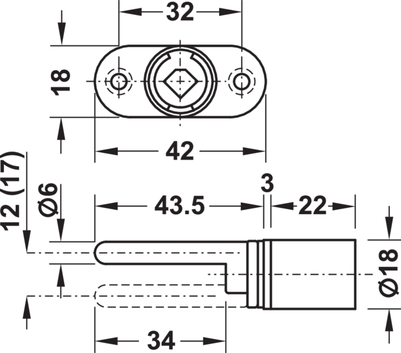 234.98.610 Häfele Symo Központi Fiókzárak Kétoldalú Rögzítő Lemezzel Emelési Magasság 17mm