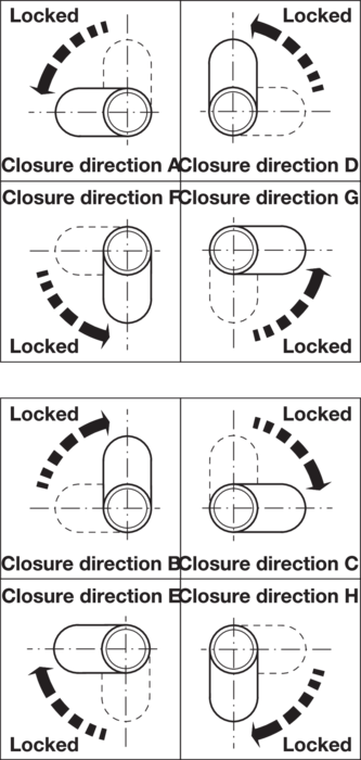 Záródás: A (D, F, G) 90° záremelő, 180° kulcs