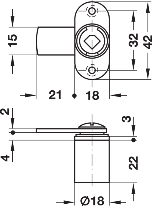 235.59.600 Häfele Symo Forgónyelves Zár Csavarozható Lemezzel, Egyenes Zárkarral Záródás A