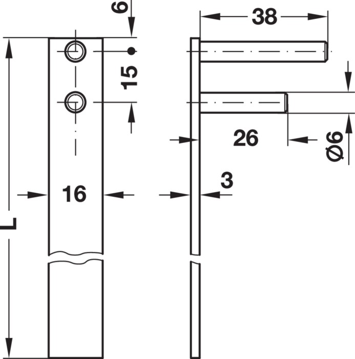 237.10.002 Häfele Központizár Rúd Hossz 600mm Központi Zárakhoz