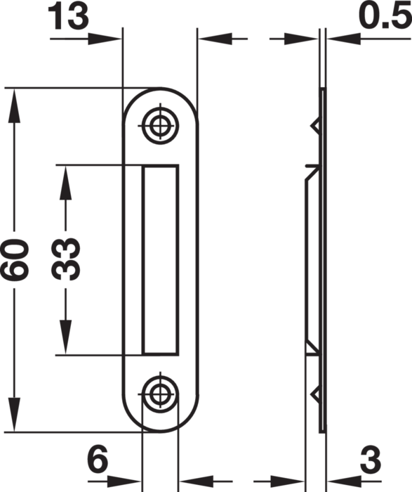 239.05.704 Häfele Zárlemez 13x60mm Nikkelezett