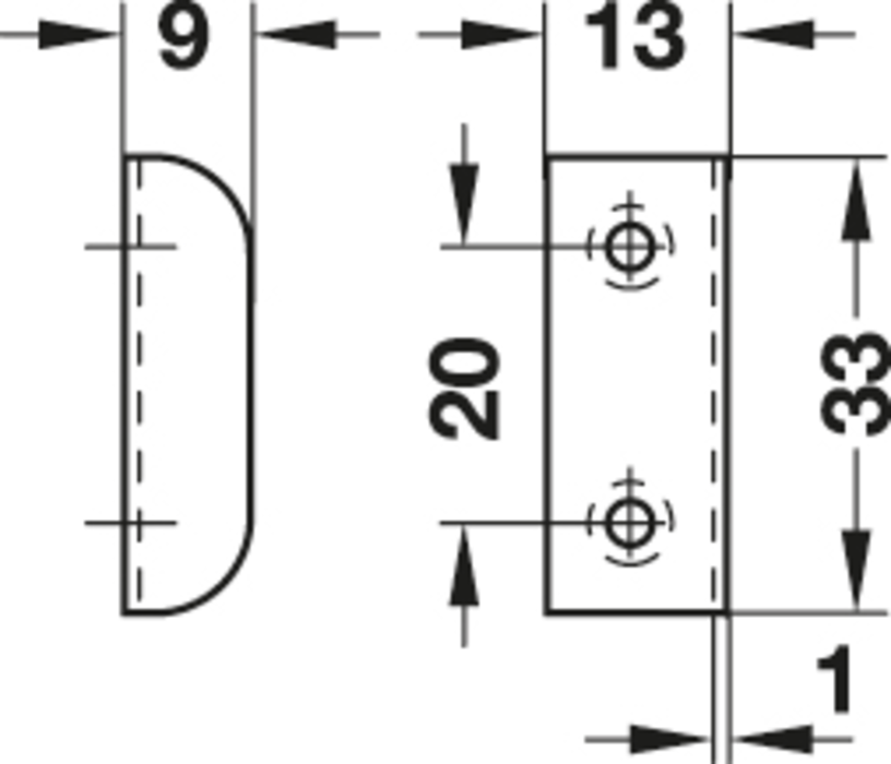 239.40.703 Häfele Acél Zárlemez 33x9mm Csavarozható Nikkelezett