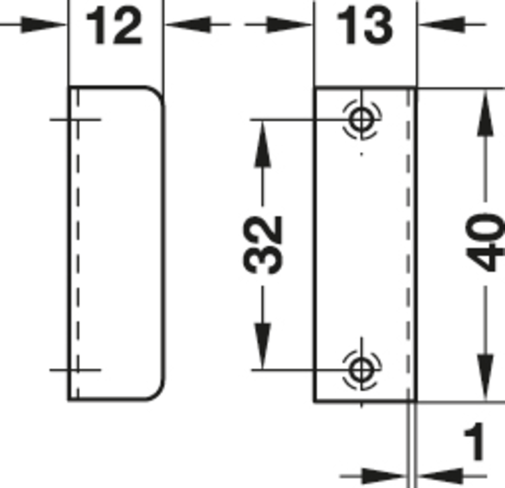 239.41.013 Häfele Acél Zárlemez 40x12mm Csavarozható Nikkelezett