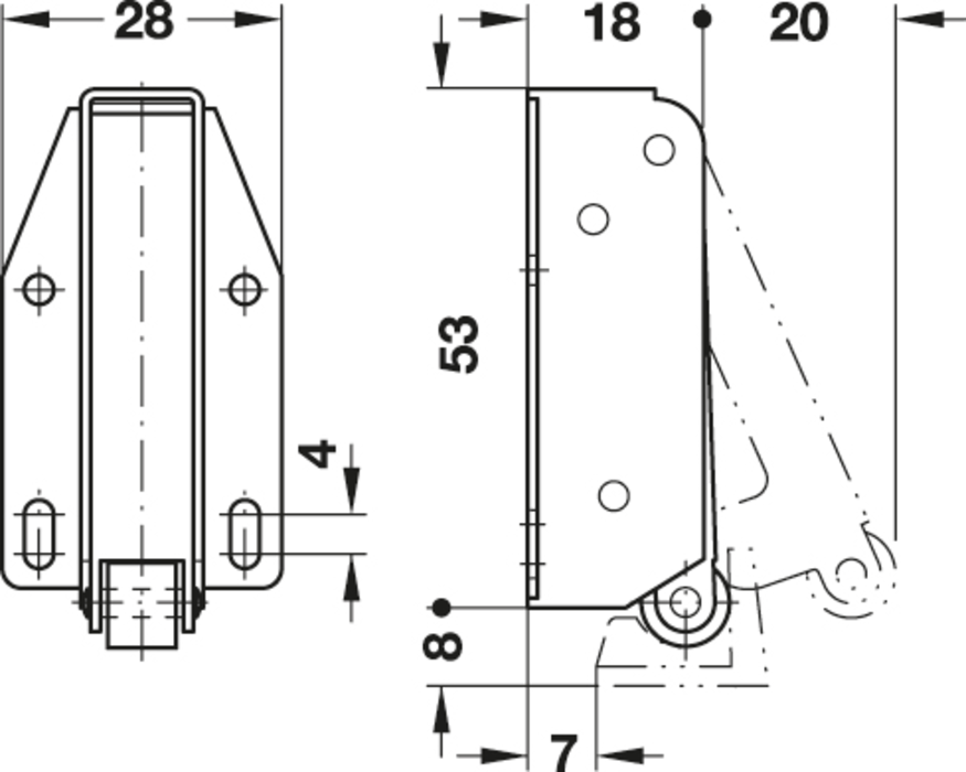245.55.913 Häfele Acél Rúgós Csappantyús Zár Fényes Horganyzott Műanyag Ellendarabbal Quick Csavarozható