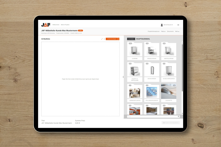 A JAF megmunkálási központjában készre gyártott bútordarabokat állítunk elő, az egyedi alkatrészektől a kész korpuszbútorokig. A JAF bútorelem gyártás online felületén egyszerűen és kényelmesen konfigurálhatja, illetve megrendelheti, amire szüksége van.